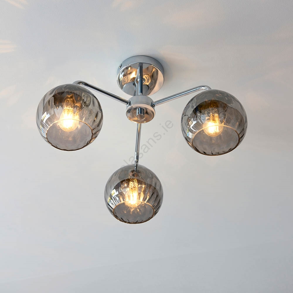 • Endon 97971 - DIMPLE Flush-Mount Chandelier 3xE14/25W/230V Polished Chrome/Smoked Grey