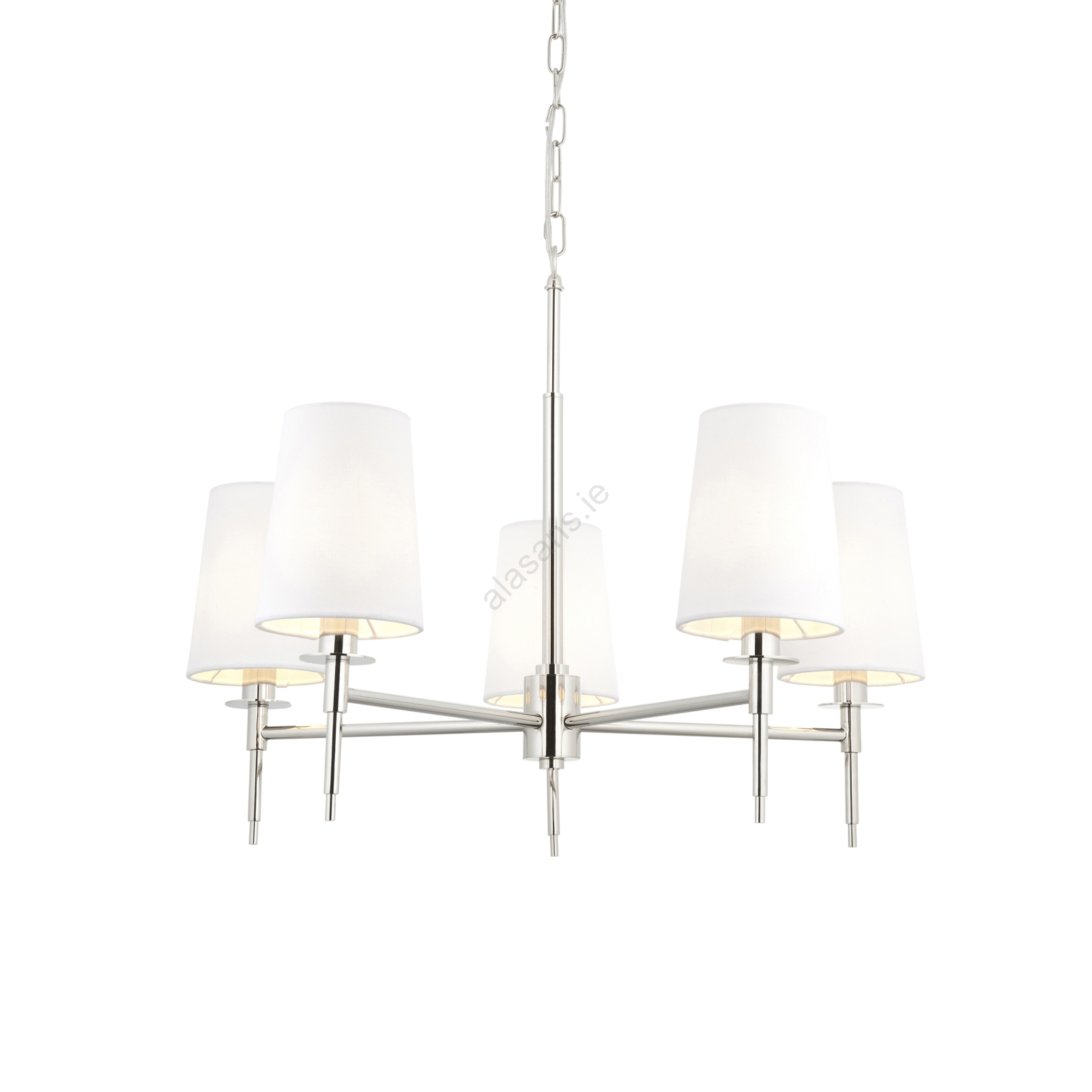 Endon 99457 - Chain-hung chandelier 5xE14/6W/230V polished chrome/white characterizes nice and functional design.  A bulb with E14 cap is suitable for the light. Here, you can buy other bulbs at advantageous prices. You will have an interesting addtiion to your home.