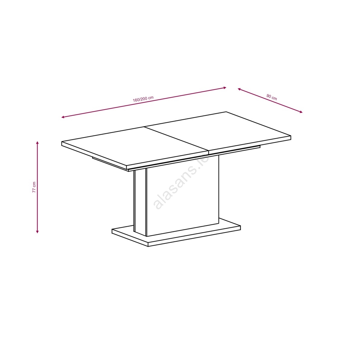 • Dimensions of the extended table: 200x90 cm.
