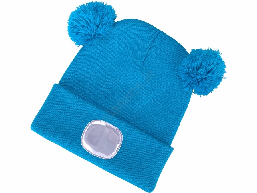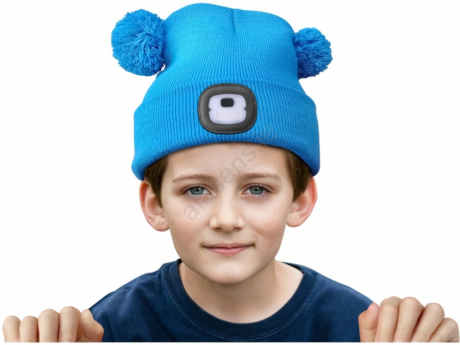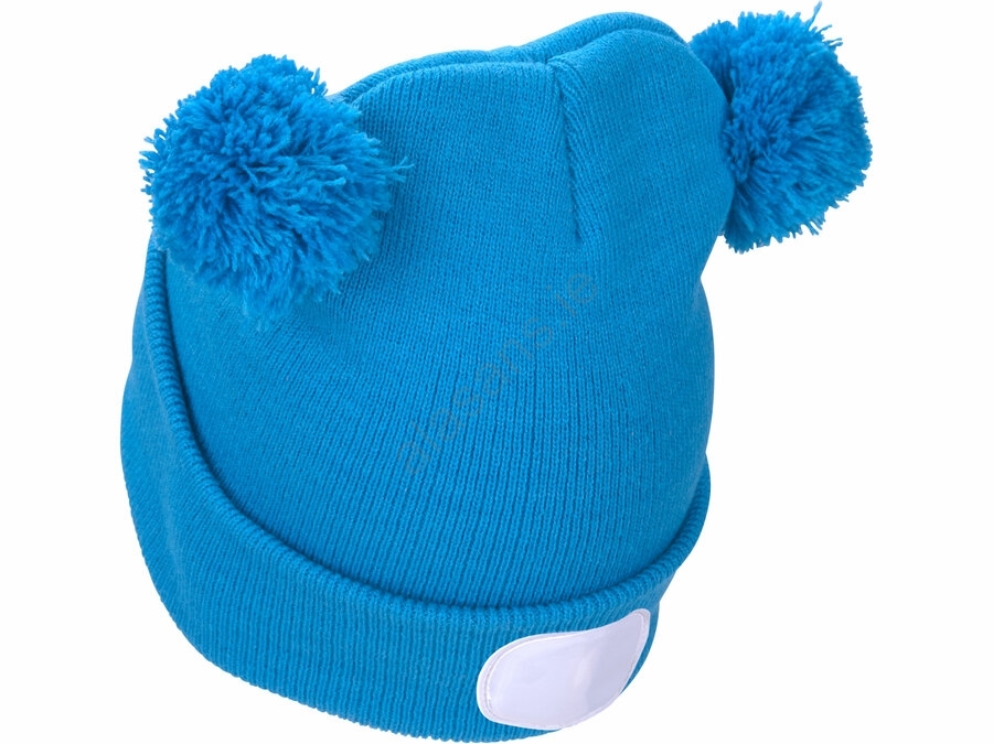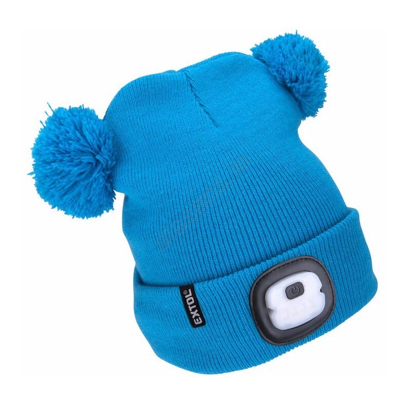 Extol - Kids' beanie with headlamp, USB-rechargeable 250 mAh, blue with pom-poms