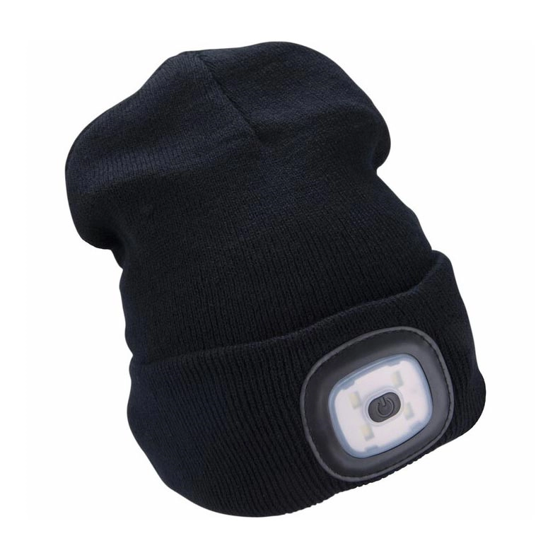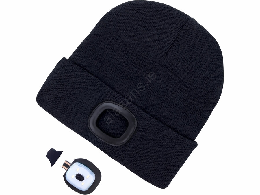 Extol - Beanie with built-in headlamp, USB-rechargeable 300 mAh battery, black, one size
