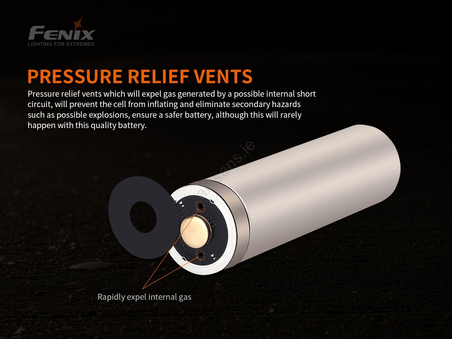 • Thanks to the combination of electronic and mechanical (thermal and pressure) protections, Fenix batteries rank among the safest available Li-ion cells.
