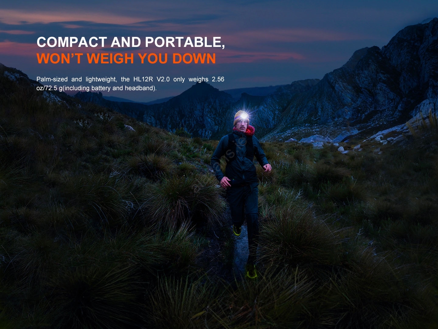 • The ultra-light and powerful rechargeable Fenix HL12R V2.0 headlamp delivers up to 500 lumens and a beam distance of 125 meters.