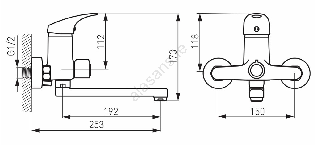 • This compact wall-mounted bath faucet is an elegant addition to any bathroom.