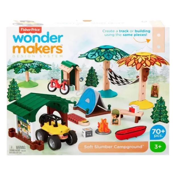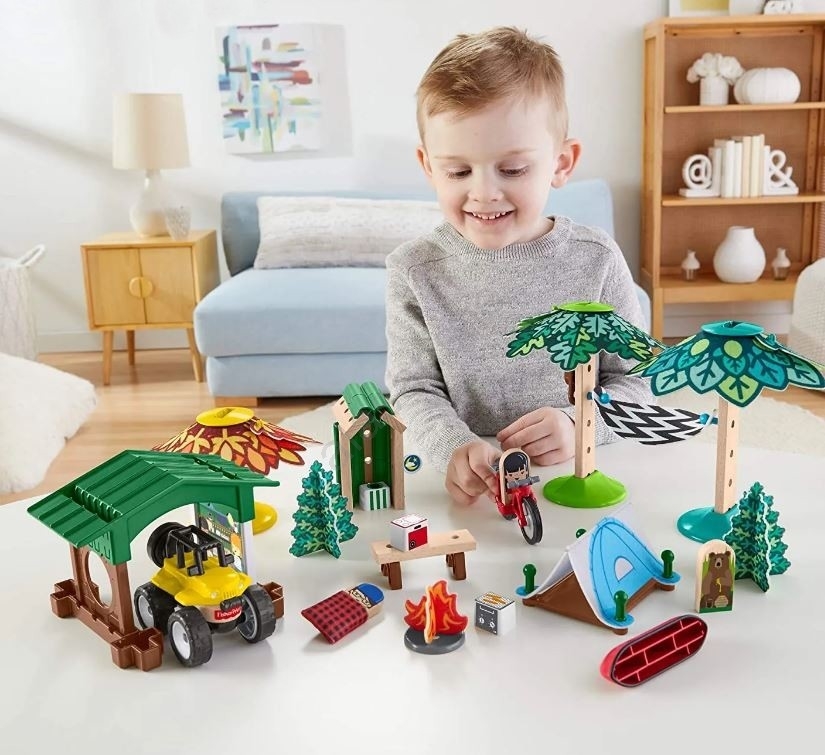 • With the set, kids can create a dream camping destination, complete with shady trees, a cozy hammock, a canoe ride, a campfire for roasting s'mores and more.