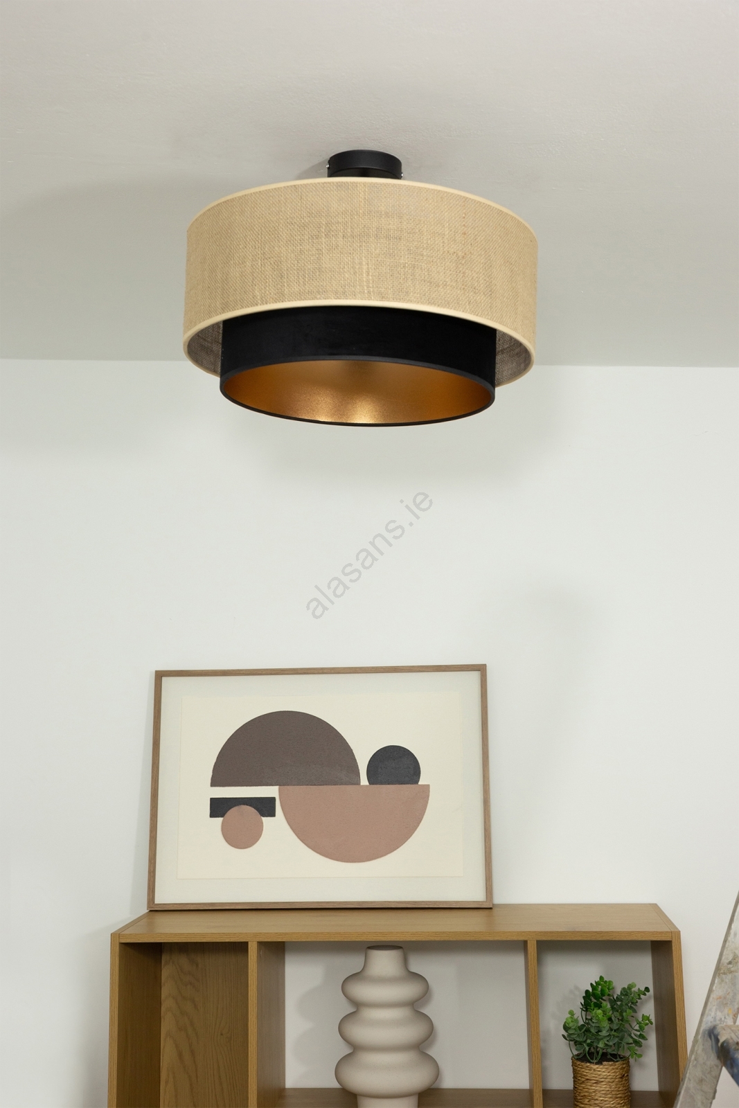 • SARTA Flush-Mount Ceiling Light 1xE27/60W/230V Ø 45 cm Black/Jute