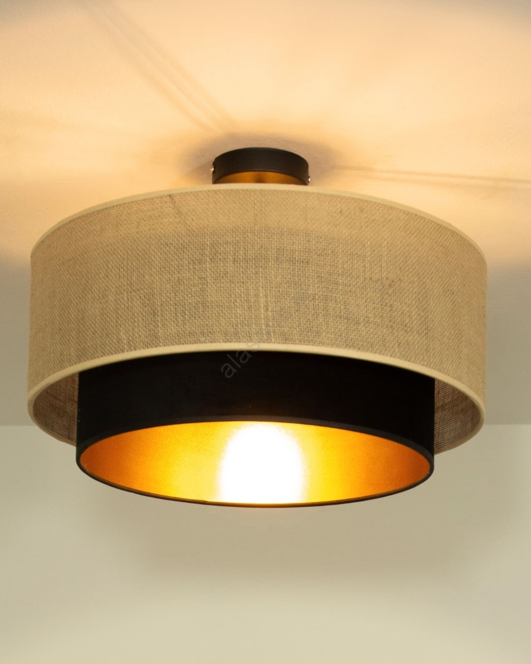 SARTA Flush-Mount Ceiling Light 1xE27/60W/230V Ø 45 cm Black/Jute characterizes nice and functional design.  A bulb with E27 cap is suitable for the light. Here, you can buy other bulbs at advantageous prices. You will have an interesting addtiion to your home.