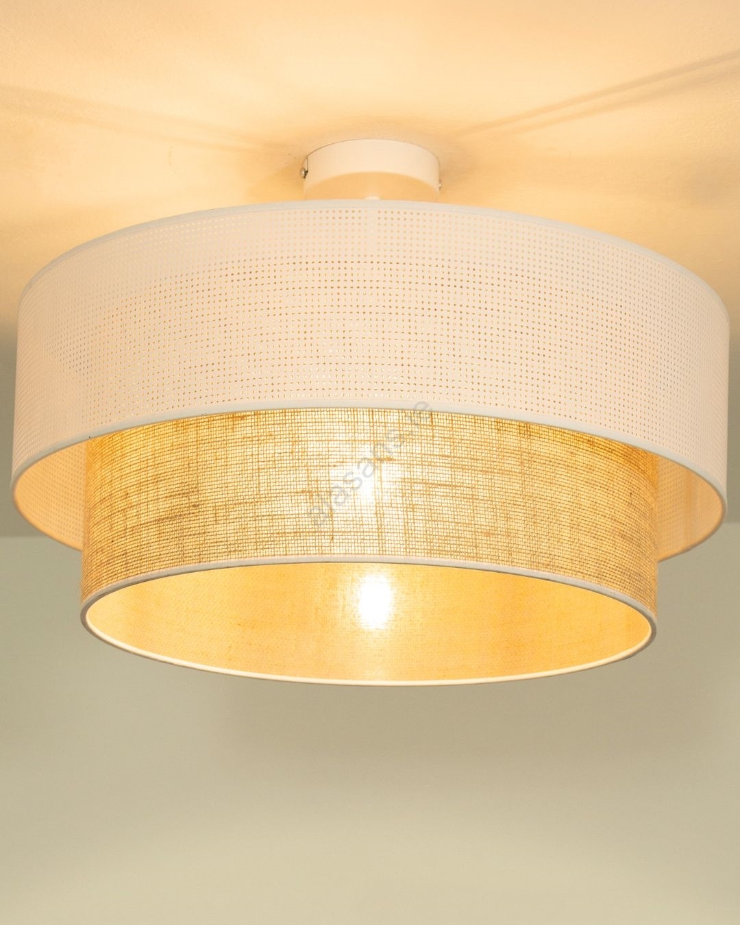 BORHO flush-mounted ceiling light 1xE27/60W/230V Ø 50 cm white/jute characterizes nice and functional design.  A bulb with E27 cap is suitable for the light. Here, you can buy other bulbs at advantageous prices. You will have an interesting addtiion to your home.