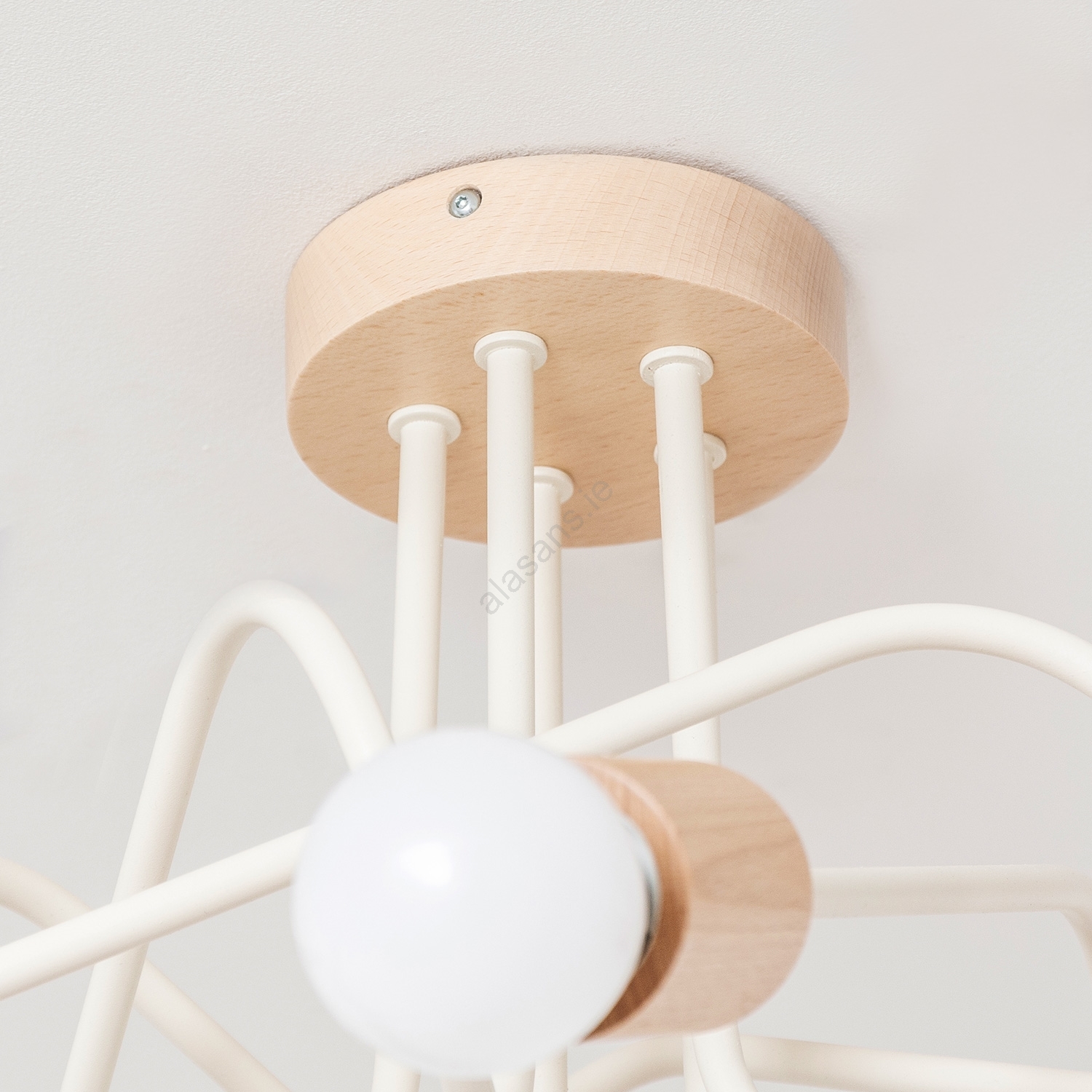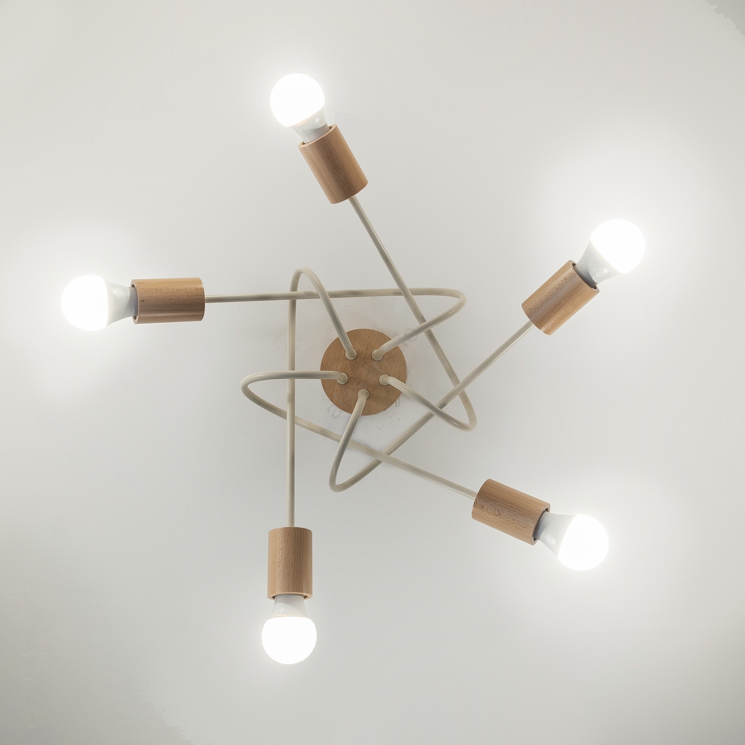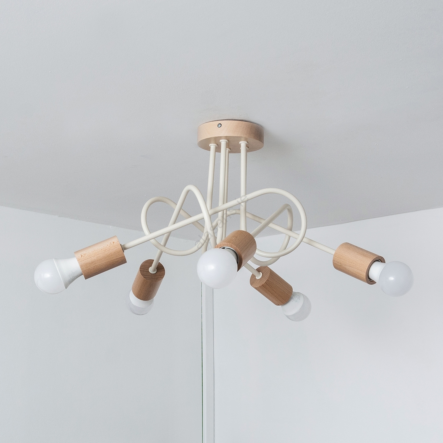 Flush-mount chandelier OXFORD 5xE27/15W/230V pine/cream characterizes nice and functional design.  A bulb with E27 cap is suitable for the light. Here, you can buy other bulbs at advantageous prices. You will have an interesting addtiion to your home.