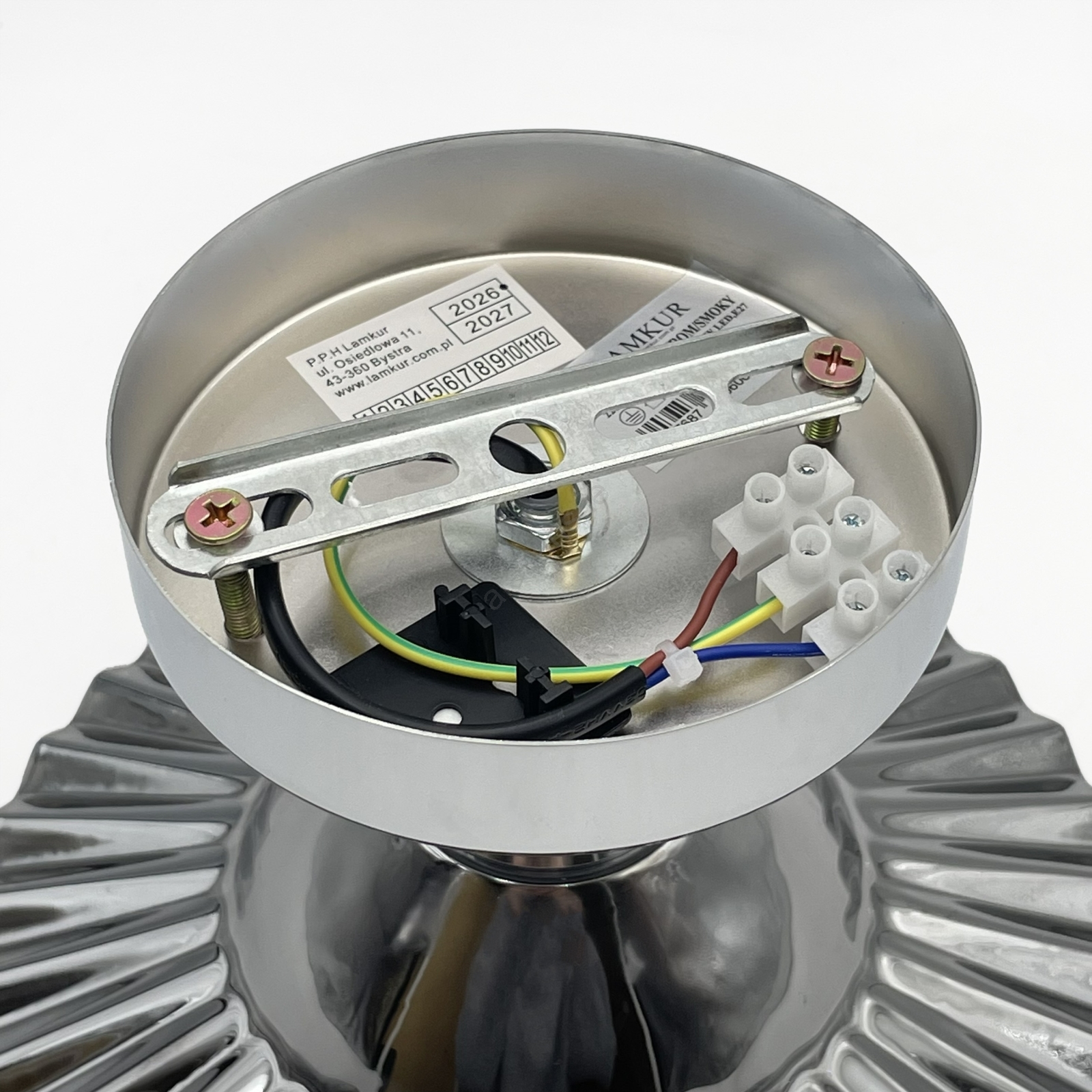 Flush-mount chandelier TRISH 1xE27/15W/230V polished chrome/smoked black characterizes nice and functional design.  A bulb with E27 cap is suitable for the light. Here, you can buy other bulbs at advantageous prices. You will have an interesting addtiion to your home.