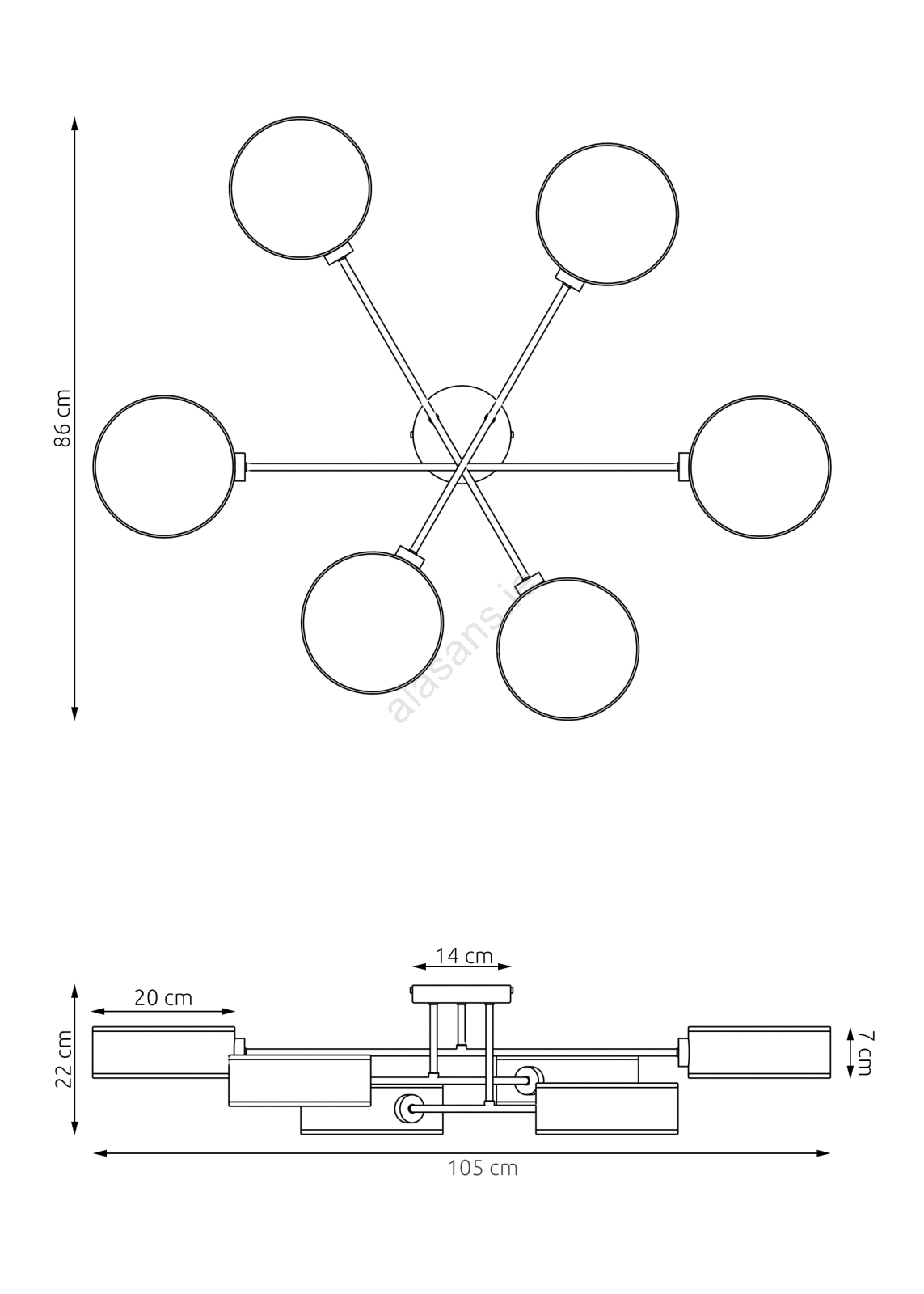 Flush-mounted chandelier MAGA 6xE14/10W/230V black/grey characterizes nice and functional design.  A bulb with E14 cap is suitable for the light. Here, you can buy other bulbs at advantageous prices. You will have an interesting addtiion to your home.