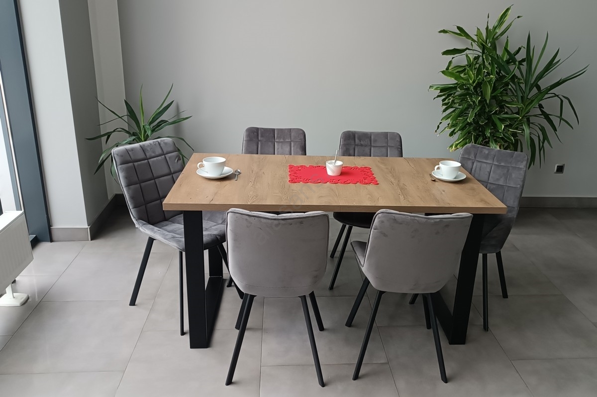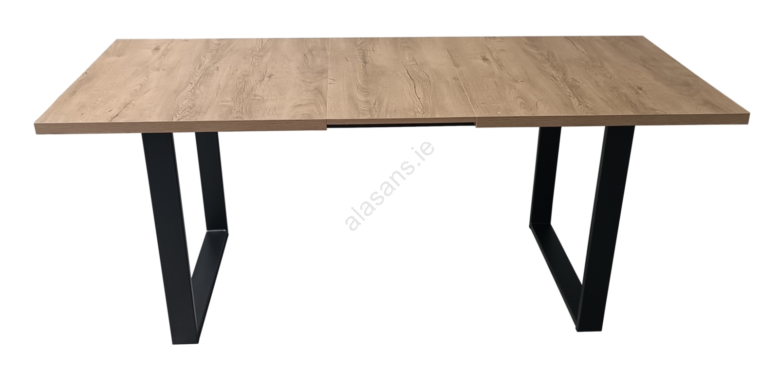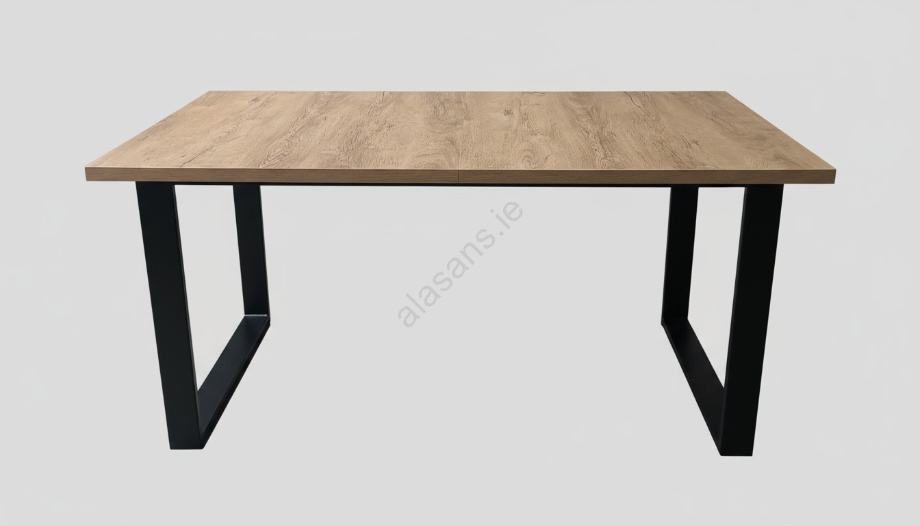 • The oak-look finish gives the dining table a modern yet inviting appearance.