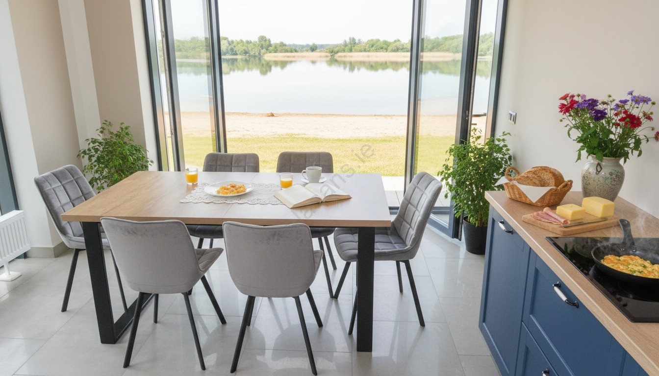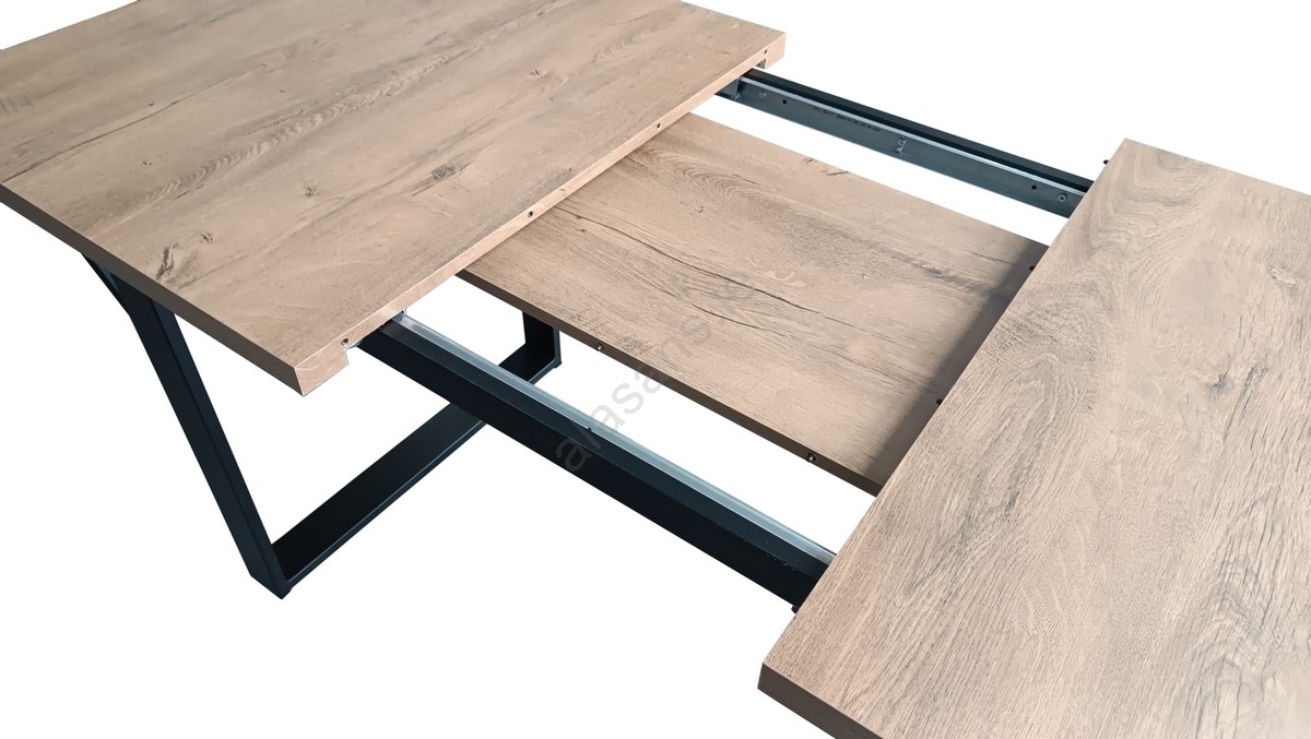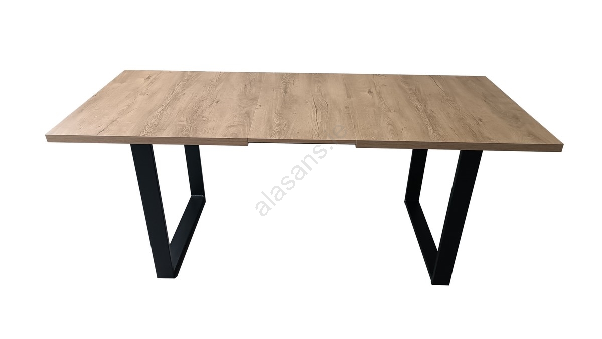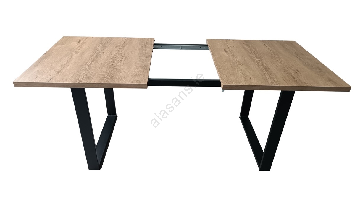 • The oak-look finish gives the dining table a modern yet inviting appearance.