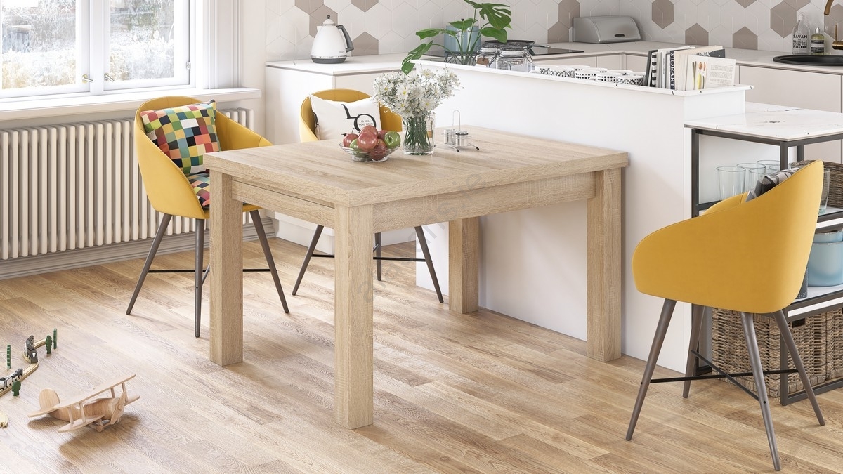 • The tabletop is made of particleboard covered with a premium laminate finish and the legs are solid wood, ensuring long-lasting durability.