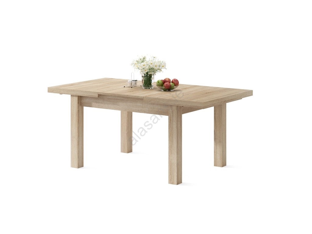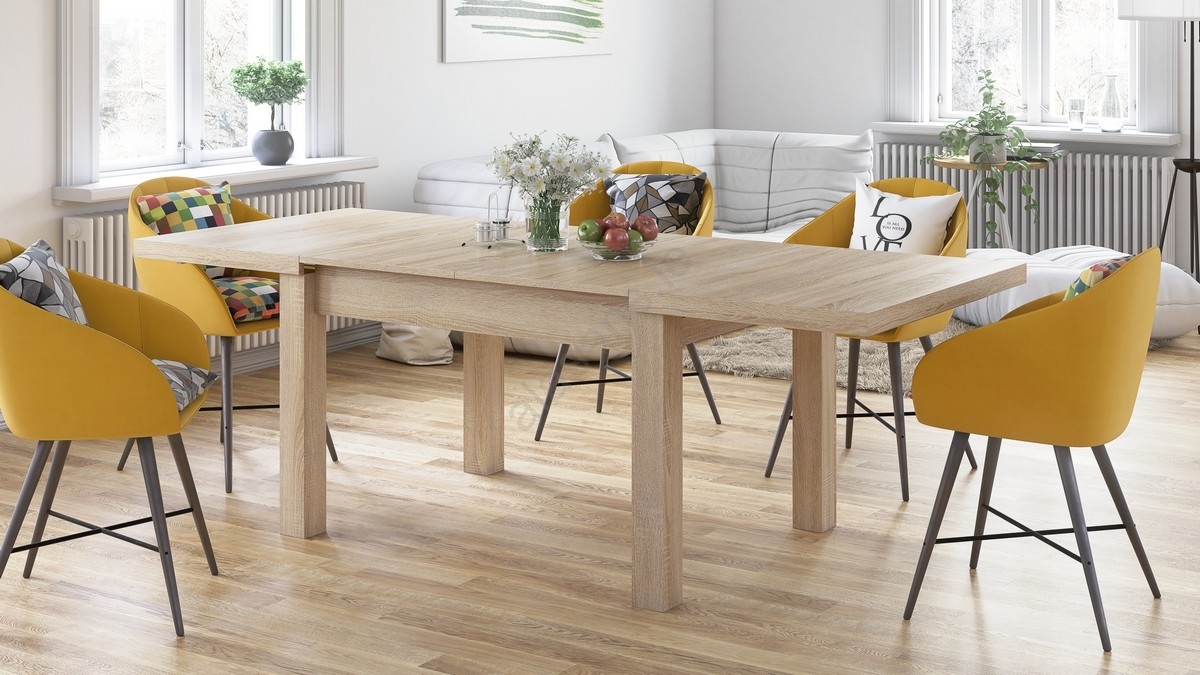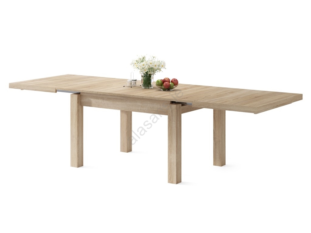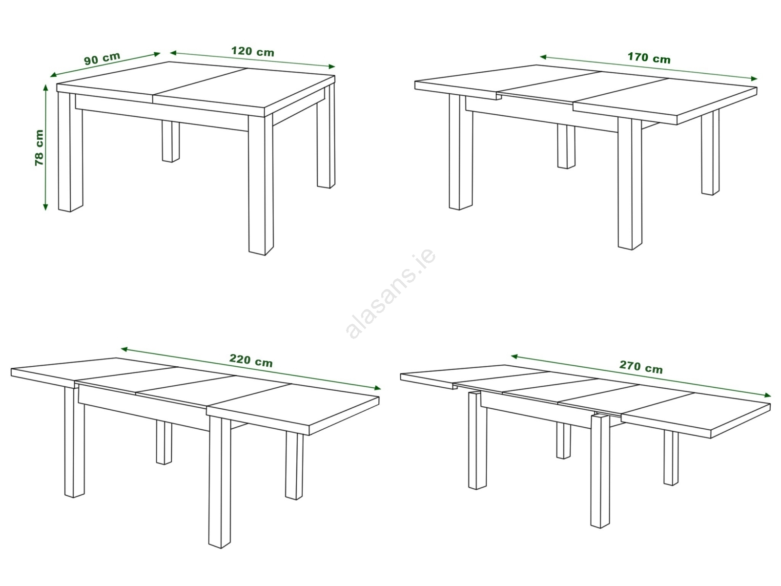 • In its compact form it looks completely unassuming, but thanks to three extension leaves (each 50 cm wide) hidden under the tabletop it can extend up to 2.7 meters.