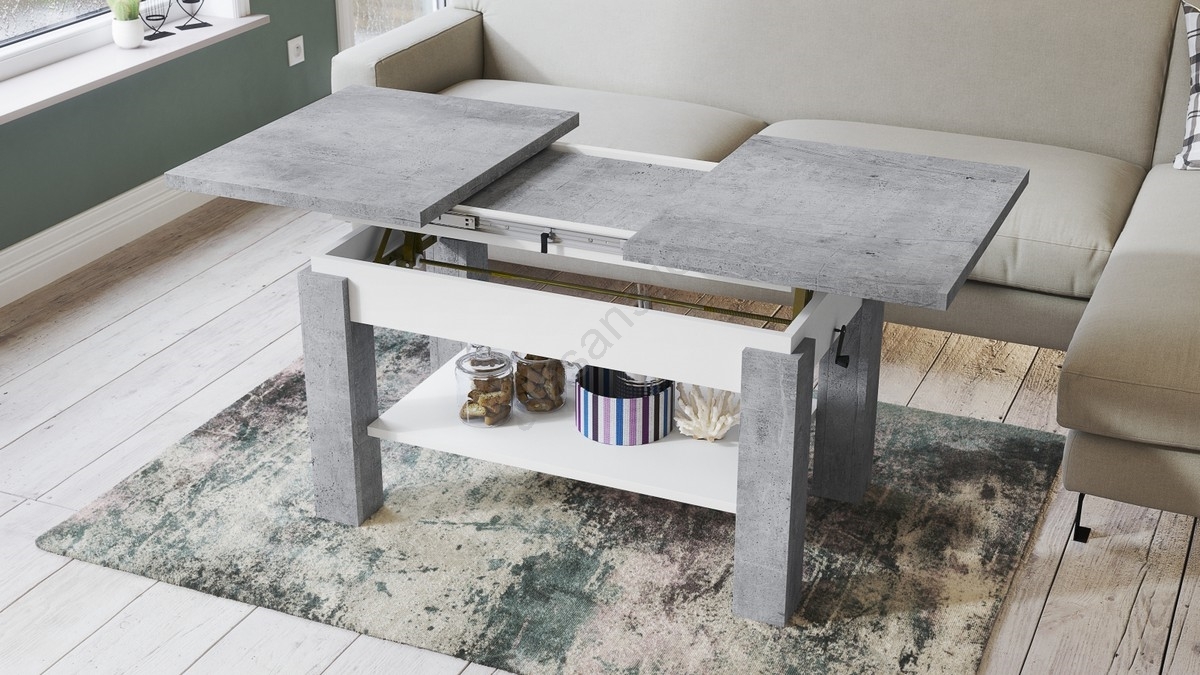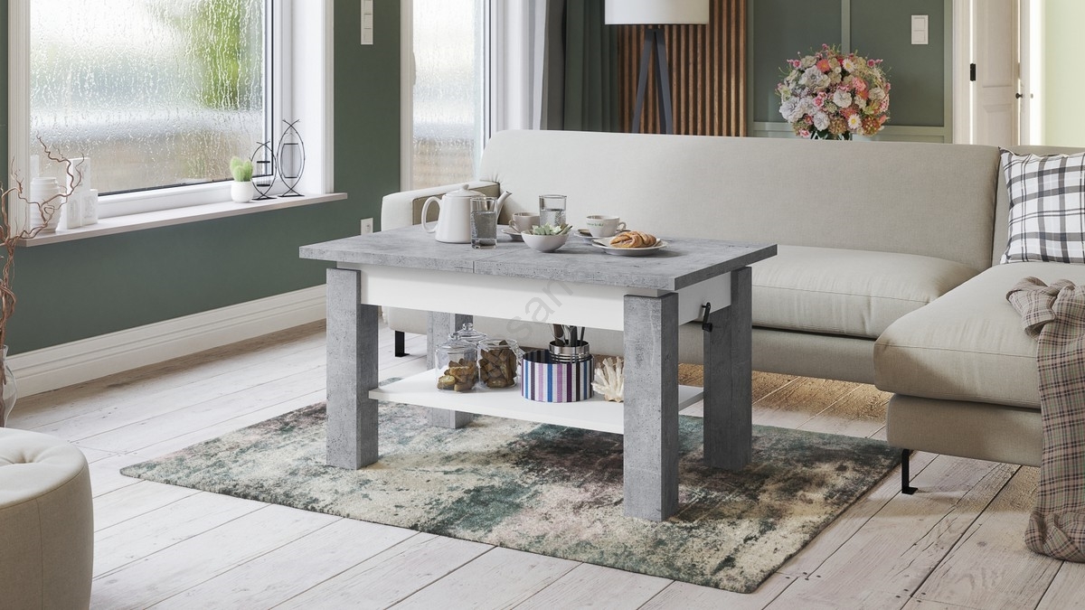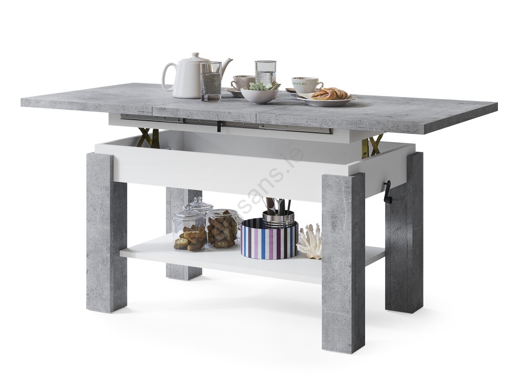 ADONIS Extendable Coffee Table with Shelf 110/150x68 cm, Concrete Grey/White