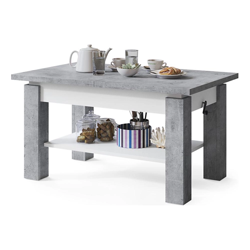 Extendable coffee/dining table with shelf ADONIS concrete grey/white