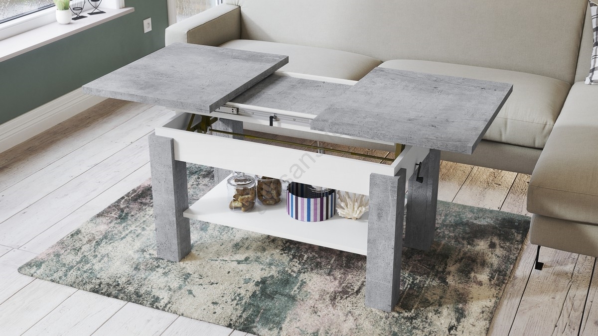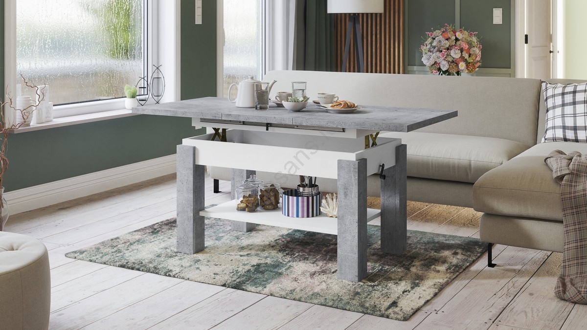 • Extendable coffee/dining table with shelf ADONIS concrete grey/white