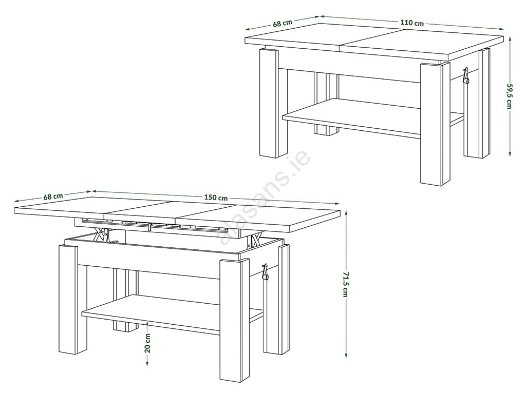 • The top can be raised to a height of up to 71.5 cm.