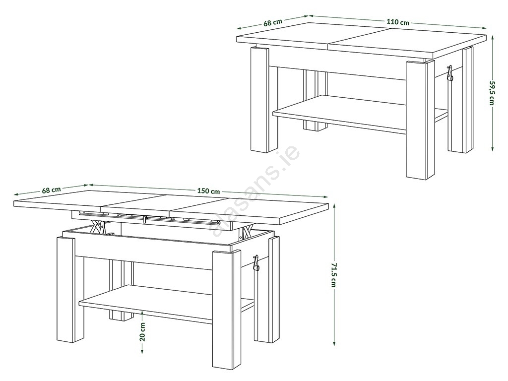 • High-quality synchronized slides ensure smooth and effortless lifting of the top, while its appropriate thickness and sturdy legs guarantee stability and resistance to heavy loads.
