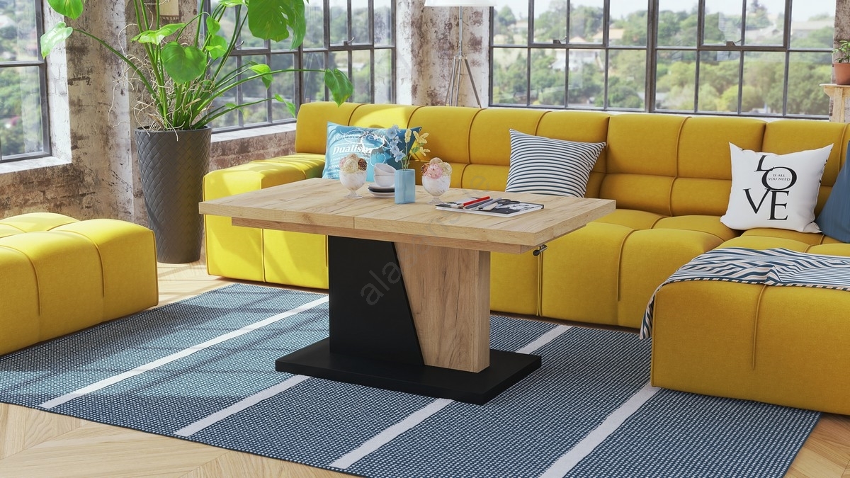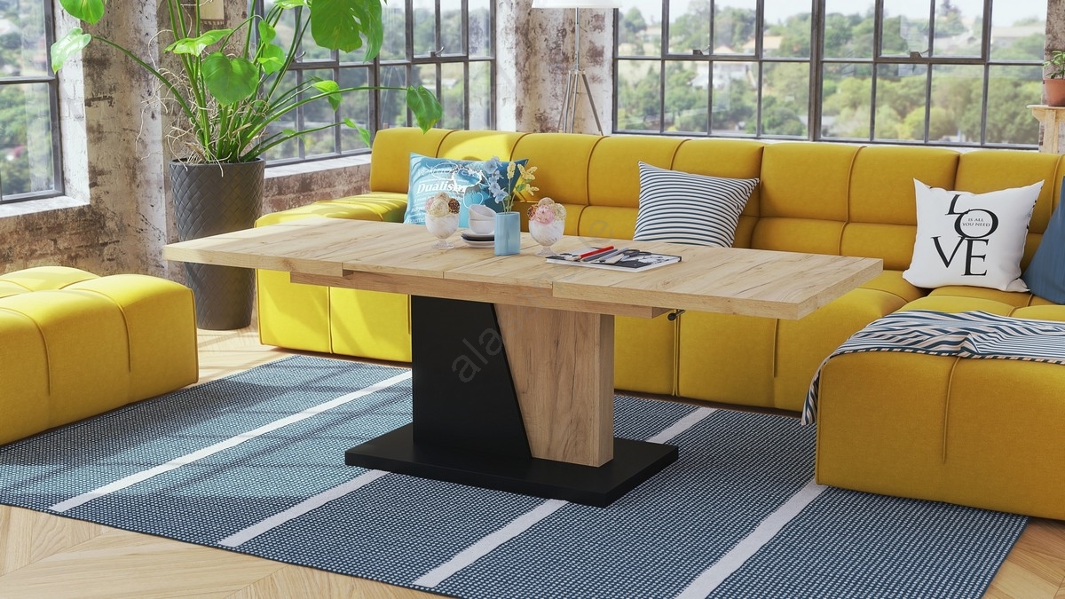 • Extendable coffee/dining table with lift-top NINO craft oak/black