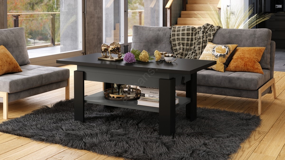 ROY Extendable Coffee Table with Lift-Top 130/170x65 cm Black/Anthracite