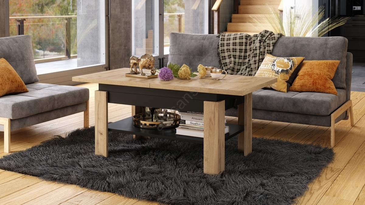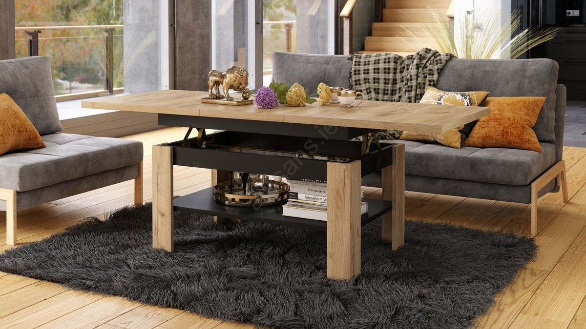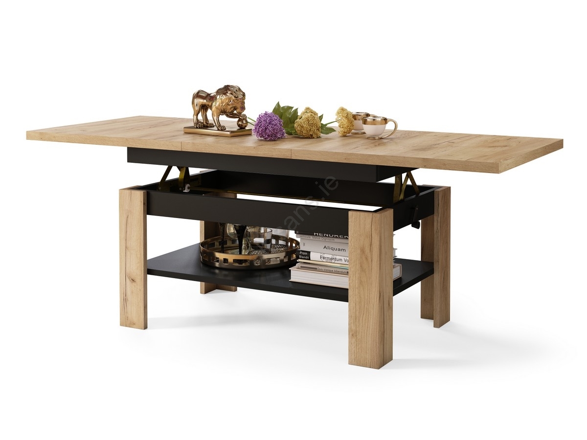 Extendable coffee table with lift-top ROY 130/170x65 cm craft oak/black