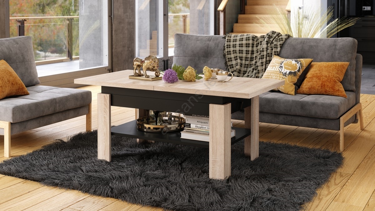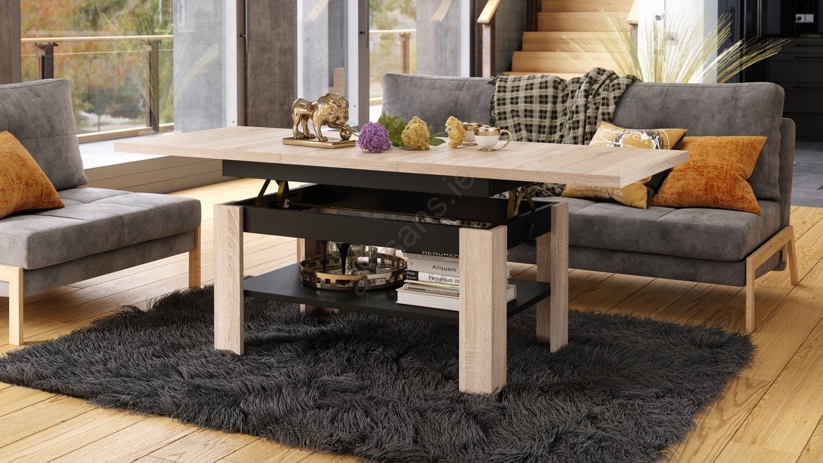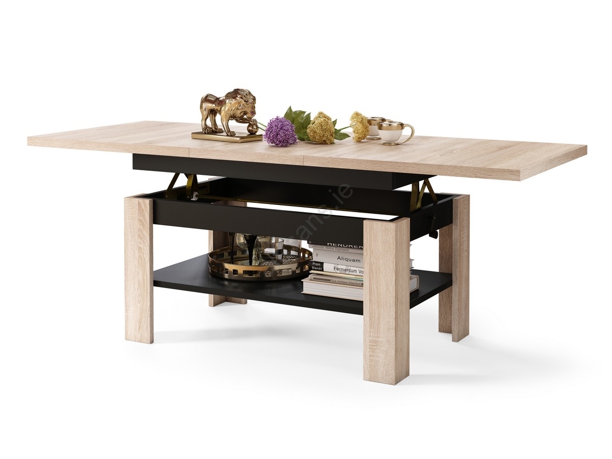 • ROY Lift-Top Extendable Coffee/Dining Table, Sonoma Oak/Black