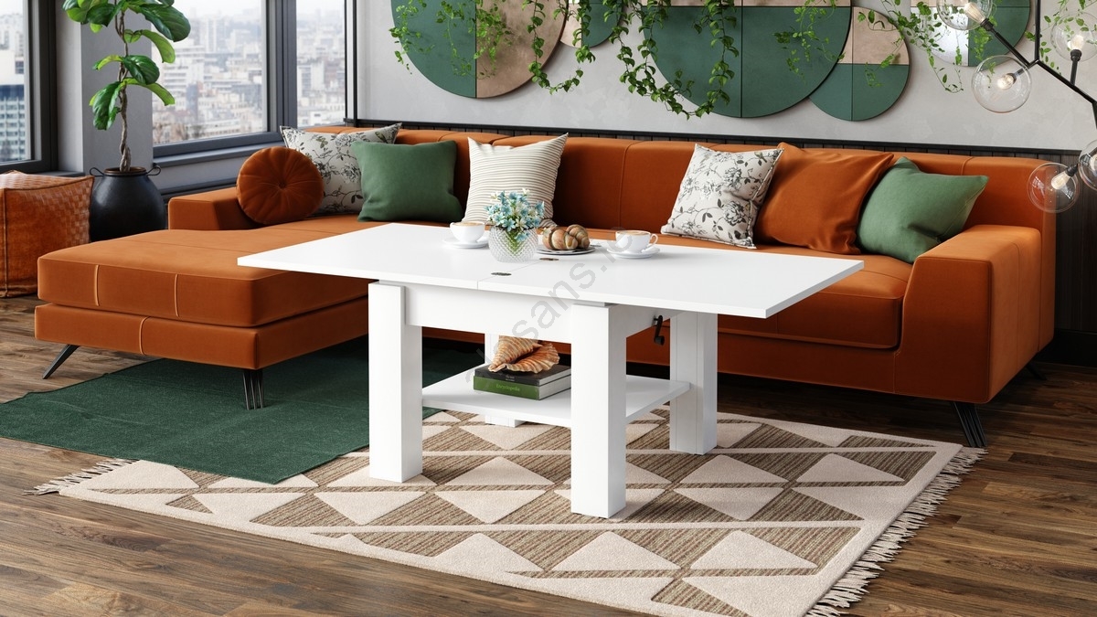 • Extendable lift-top coffee table CALEB 75/150x75 cm white