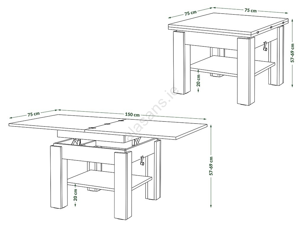 • CALEB Extendable Lift-Top Coffee Table 75/150x75 cm, Craft Oak/Black