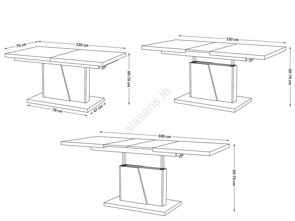 • Thanks to two 30 cm inserts, the tabletop can be expanded to 150 or 180 cm.