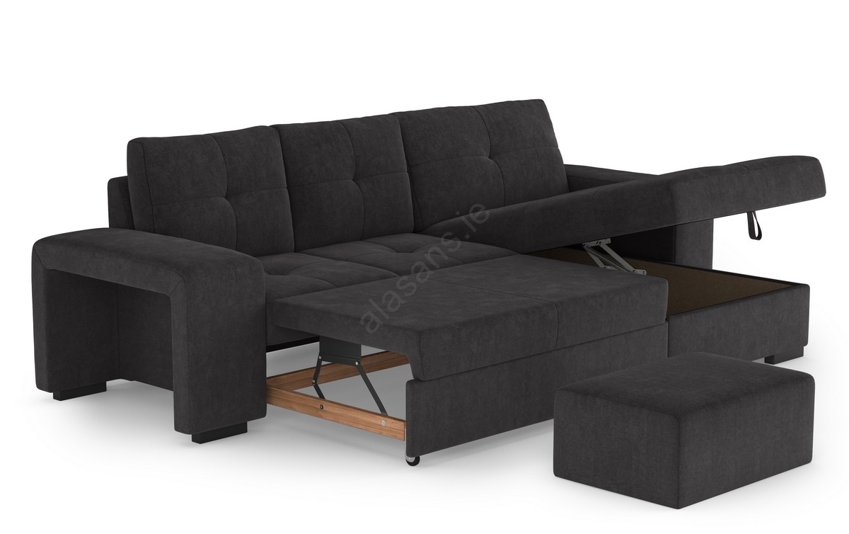 • PALERMO Left-Hand Black Sofa Bed with Storage and Ottoman