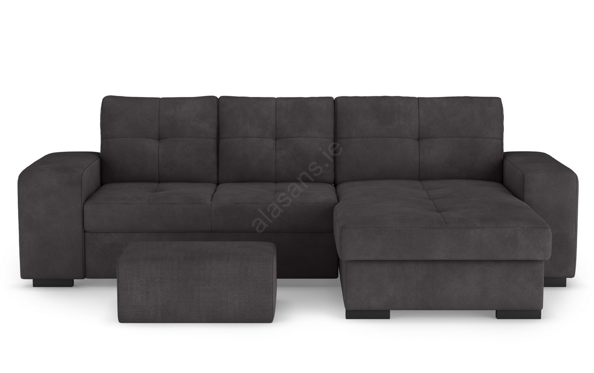 • PALERMO Right-Hand Black Sofa Bed with Storage and Ottoman