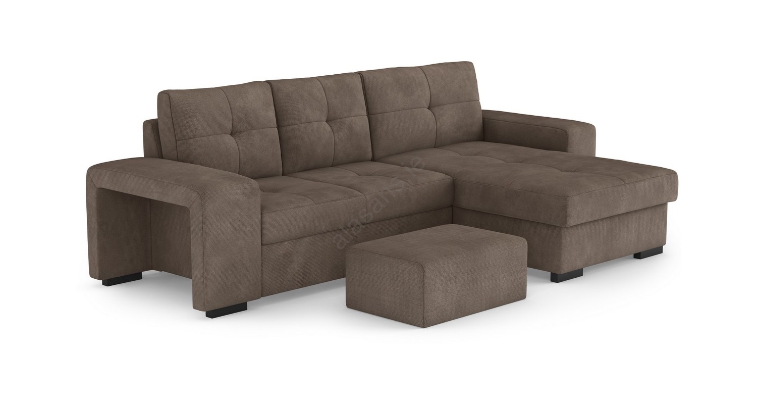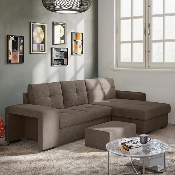 • PALERMO Brown Right-Hand Sofa Bed with Storage and Ottoman