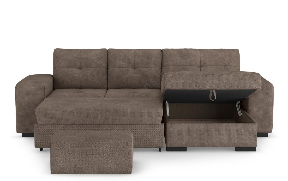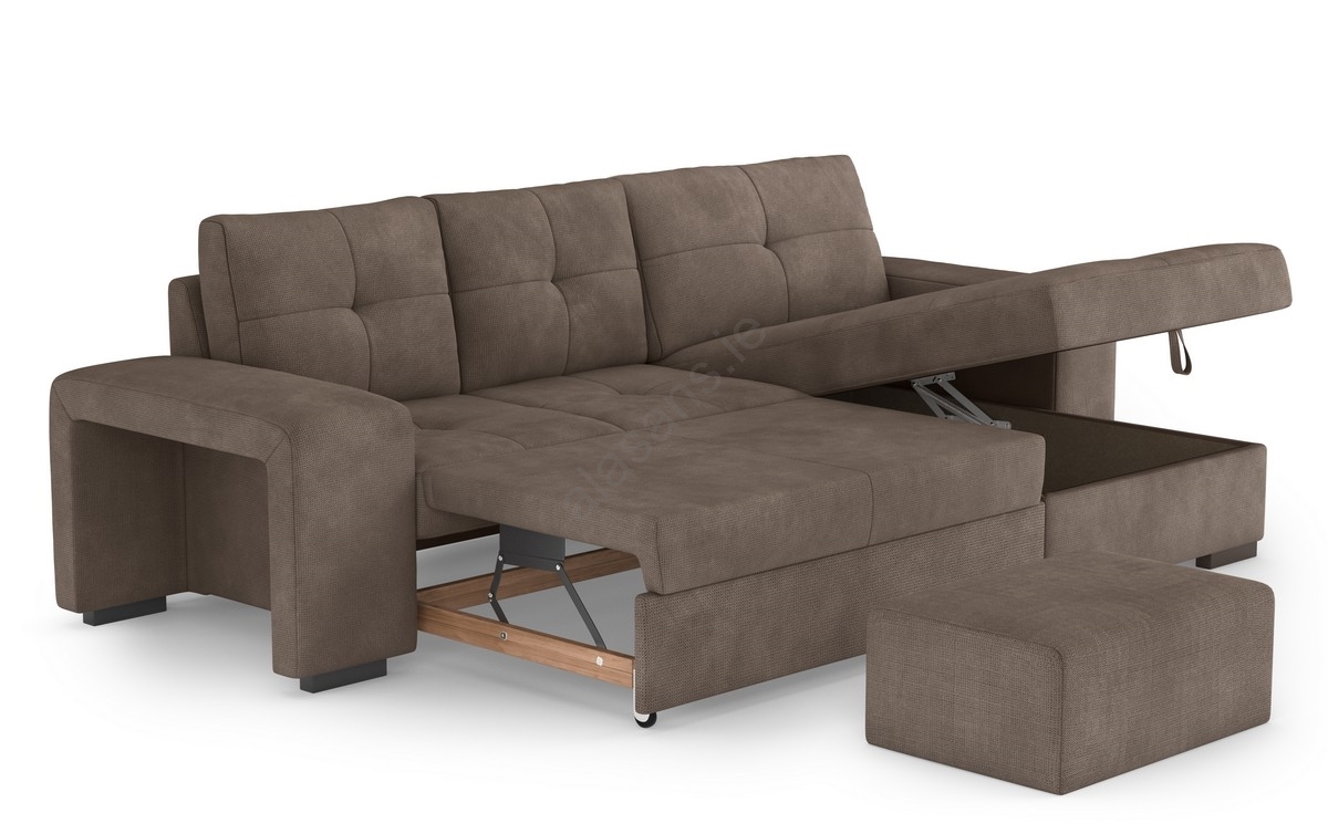 • PALERMO Left-Facing Brown Sofa Bed with Storage and Ottoman