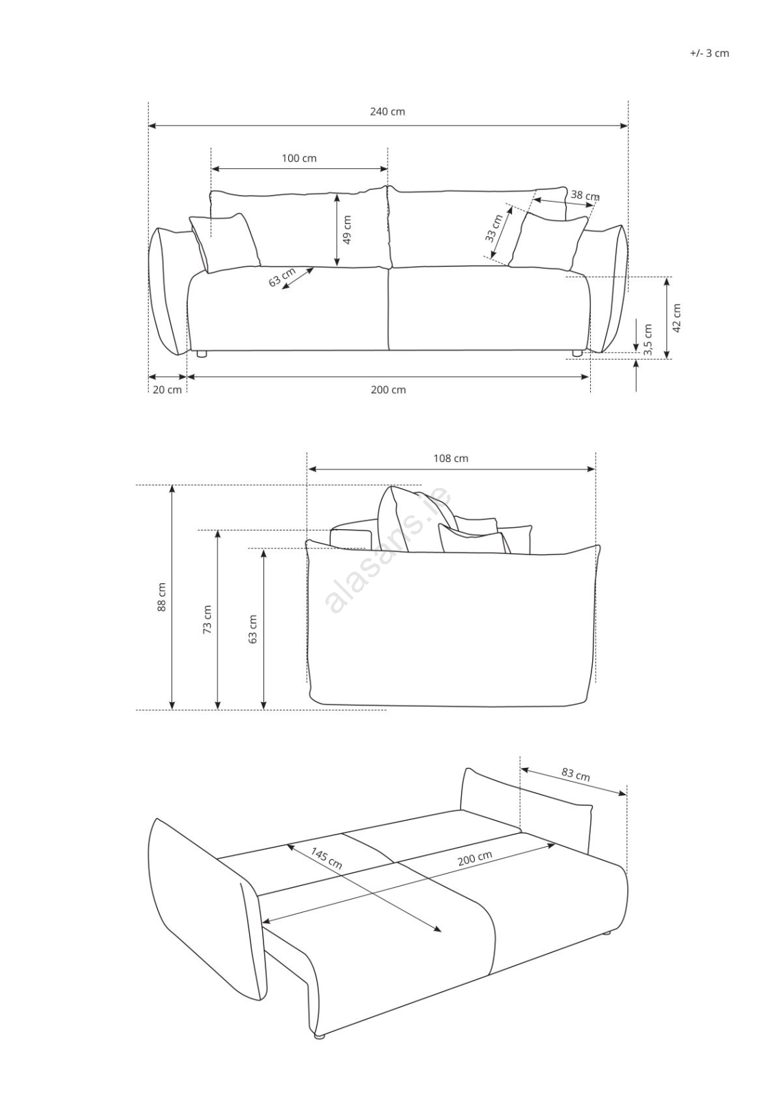 • The sofa features spacious storage for storing bedding and other seasonal items.