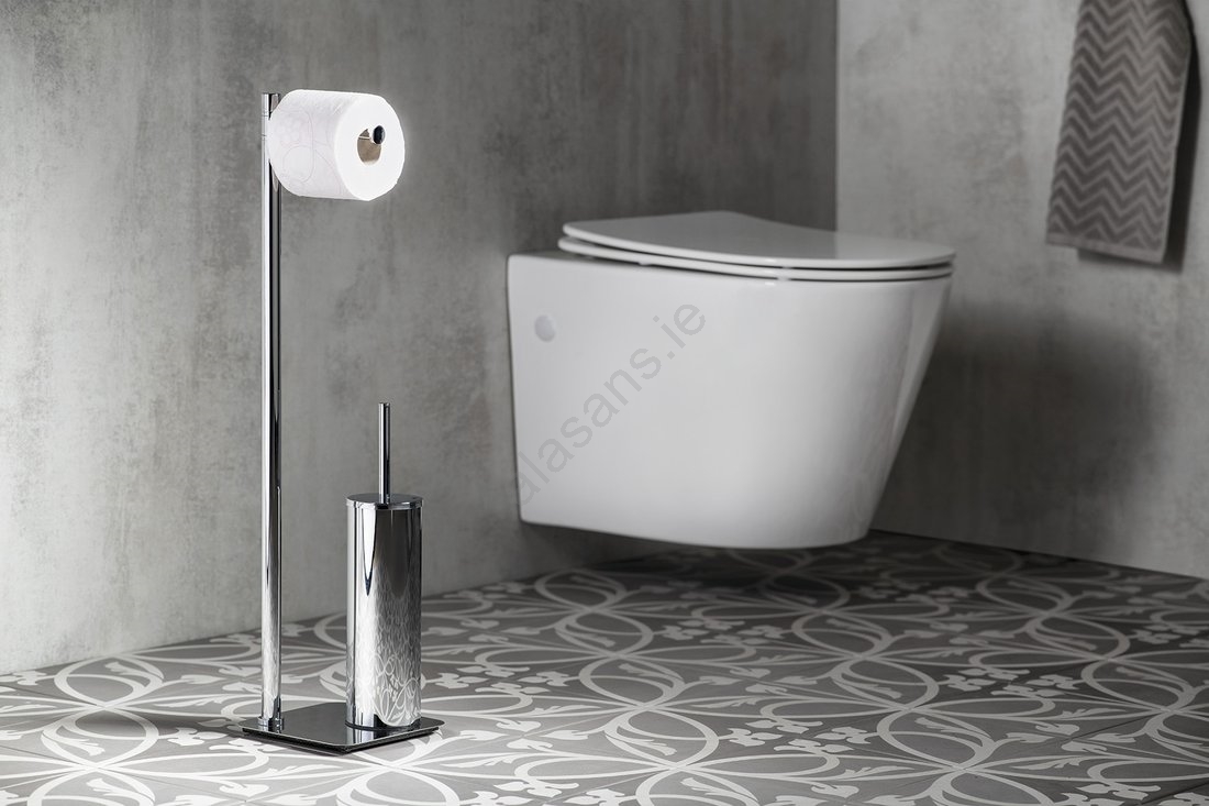 • This stand is designed to hold a roll of toilet paper and a toilet brush.