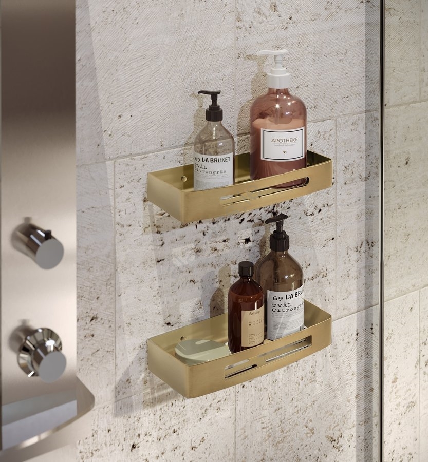 Gedy - SMART wall-mounted shower shelf 30 x 12.8 cm, matte gold