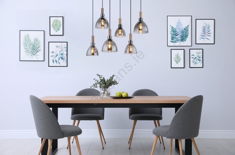 Globo - 6-Light Cable Pendant, E27/6W/230V, Black/Smoked characterizes nice and functional design.  A bulb with E27 cap is suitable for the light. Here, you can buy other bulbs at advantageous prices. You will have an interesting addtiion to your home.