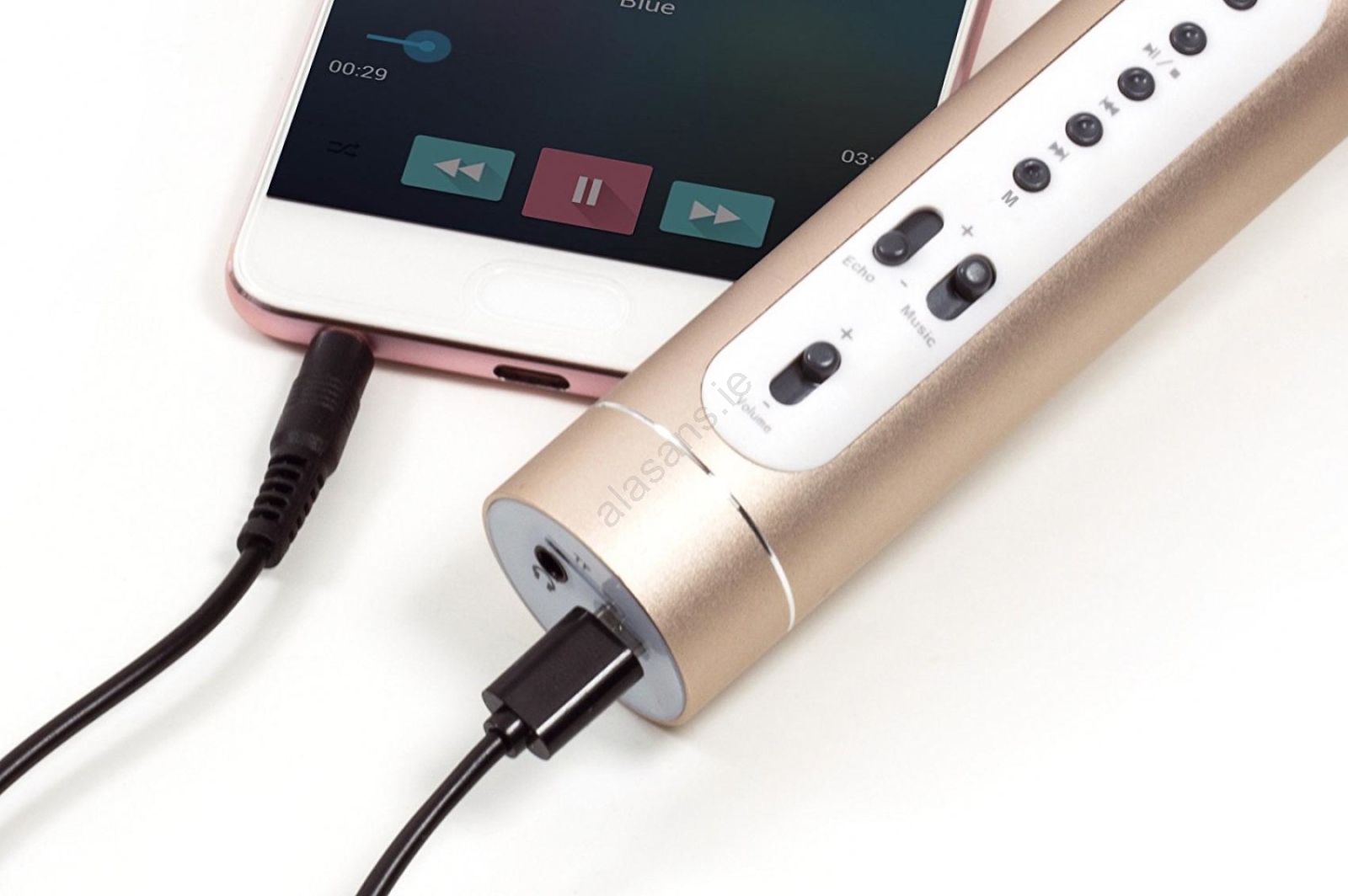 Gold Bluetooth Karaoke Microphone — 6 W, 5 V, 1500 mAh