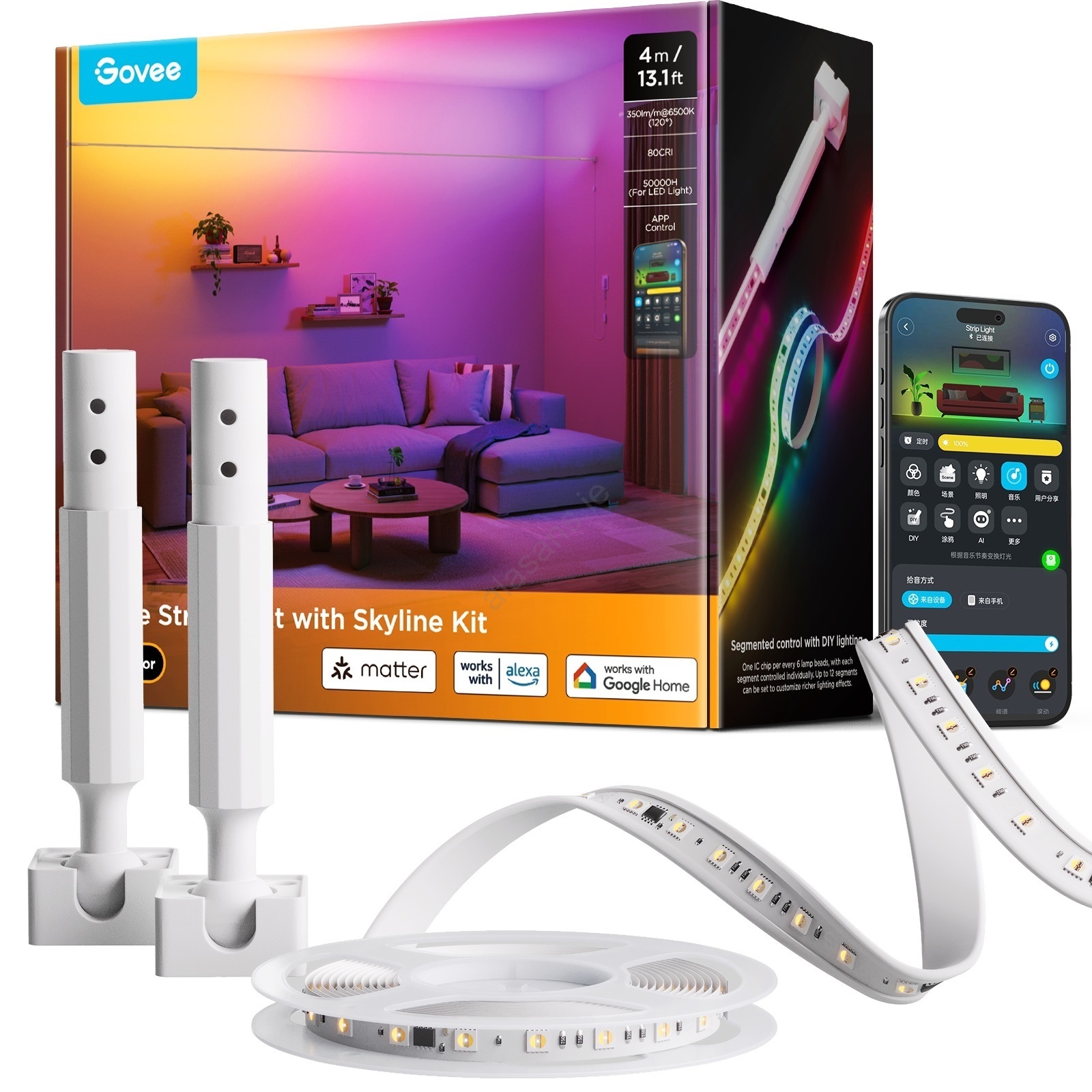 Govee - RGBICWW Hanging LED Strip 36W/24V 4m Skyline Matter Wi-Fi
