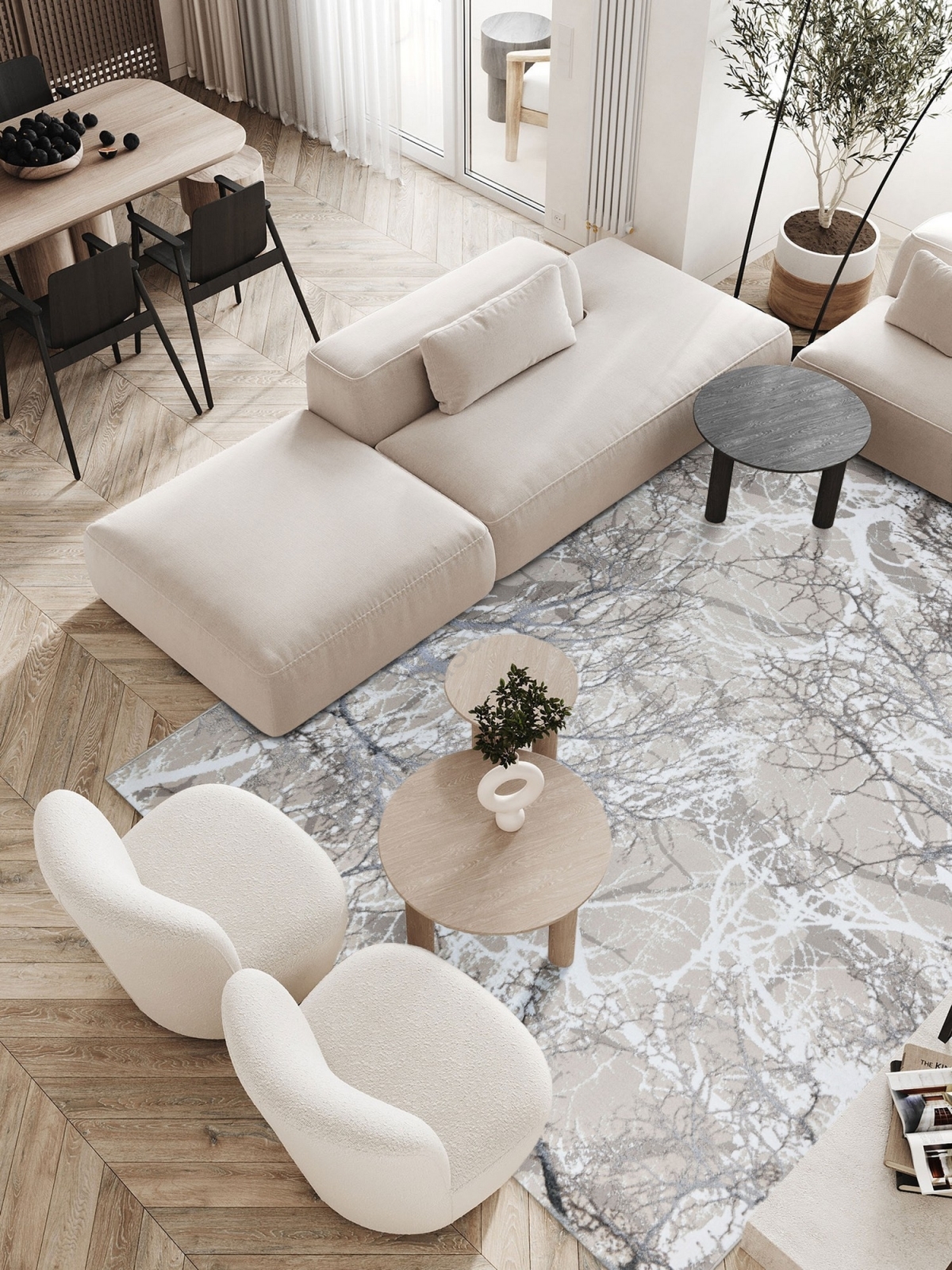 • Modern and functional rug with a branch motif.