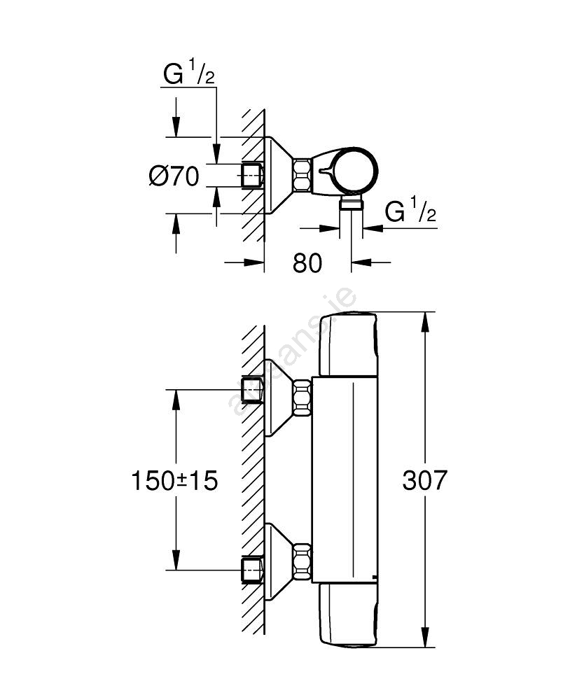 • 1/2" bottom shower outlet compatible with standard shower hoses.