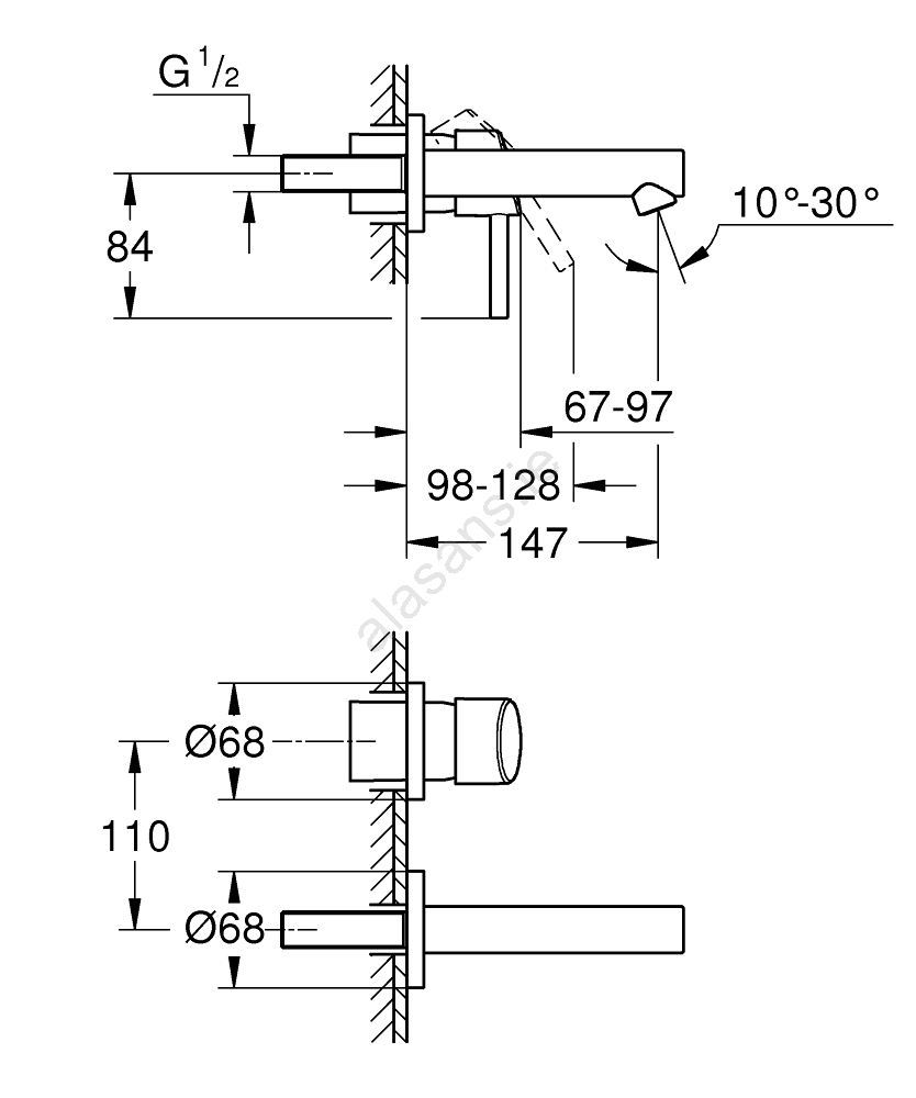 • Center-to-center distance 110 mm and spout reach 147 mm for optimal comfort.