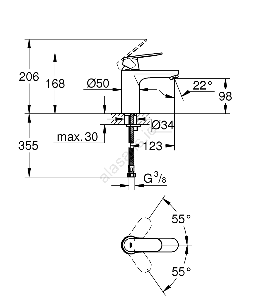 • GROHE Water Saving technology reduces water consumption by up to 50%.