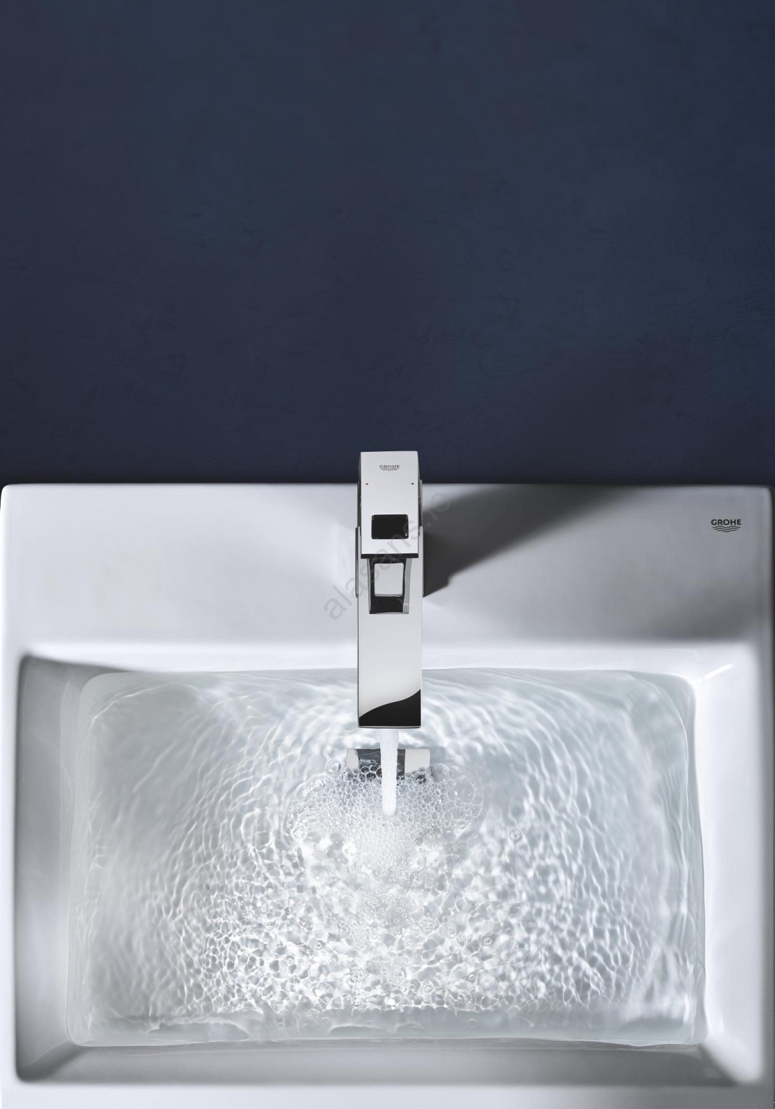 • Modern GROHE Eurocube single-lever basin mixer with an elegant square design.