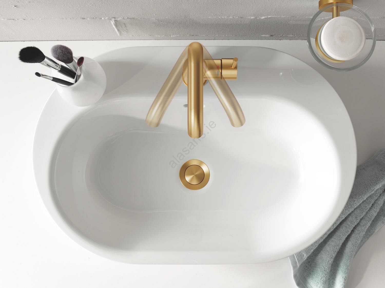 • Elegant GROHE Essence single-lever basin mixer in Brushed Cool Sunrise finish.
