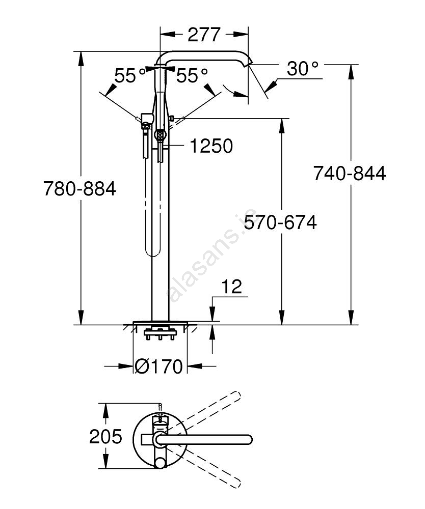 • Floor-mounted single-lever bath mixer ideal for freestanding bathtubs.