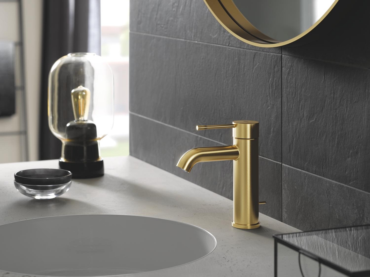 • Elegant single-lever basin mixer GROHE Essence S-Size in Brushed Cool Sunrise finish.