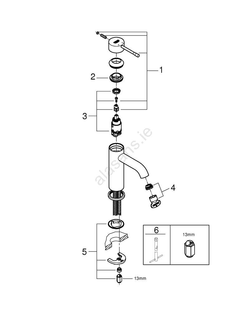 • GROHE Water Saving aerator with a flow rate of 5.7 l/min saves water without compromising comfort.